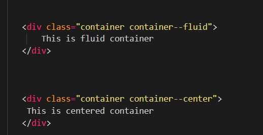 We have Two type of containers.One is Fluid container and other is Centered container. Fluid containers are those containers which take the whole width of the view.And Centered container are those container which is having some specific width and lie in the center of the view.